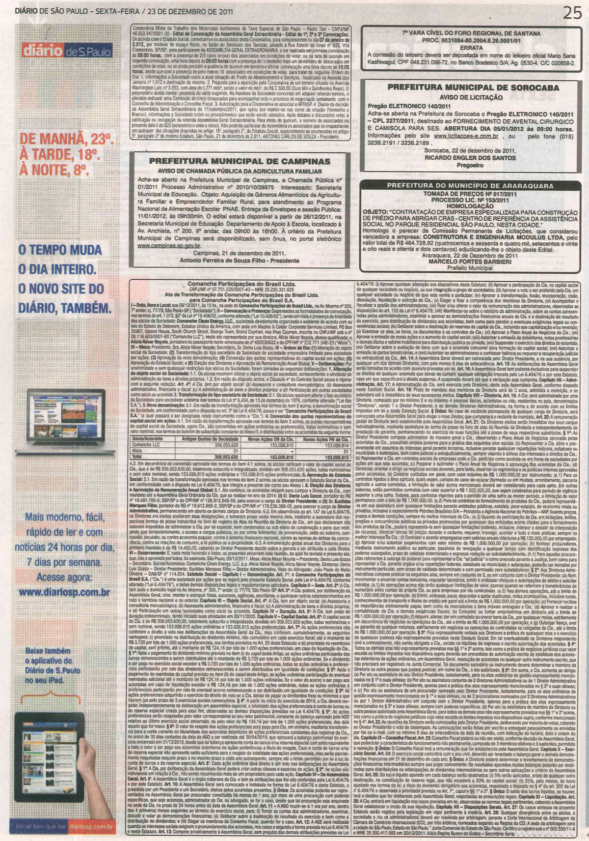 ATA 19.12.11 – Comanche S/A Emissão Debêntures