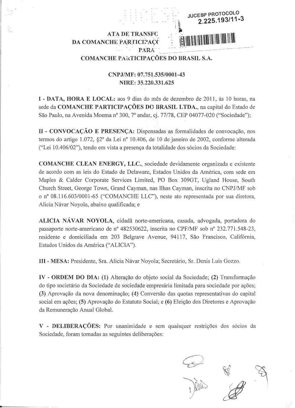 ATA 19.12.11 – Comanche S/A Emissão Debêntures