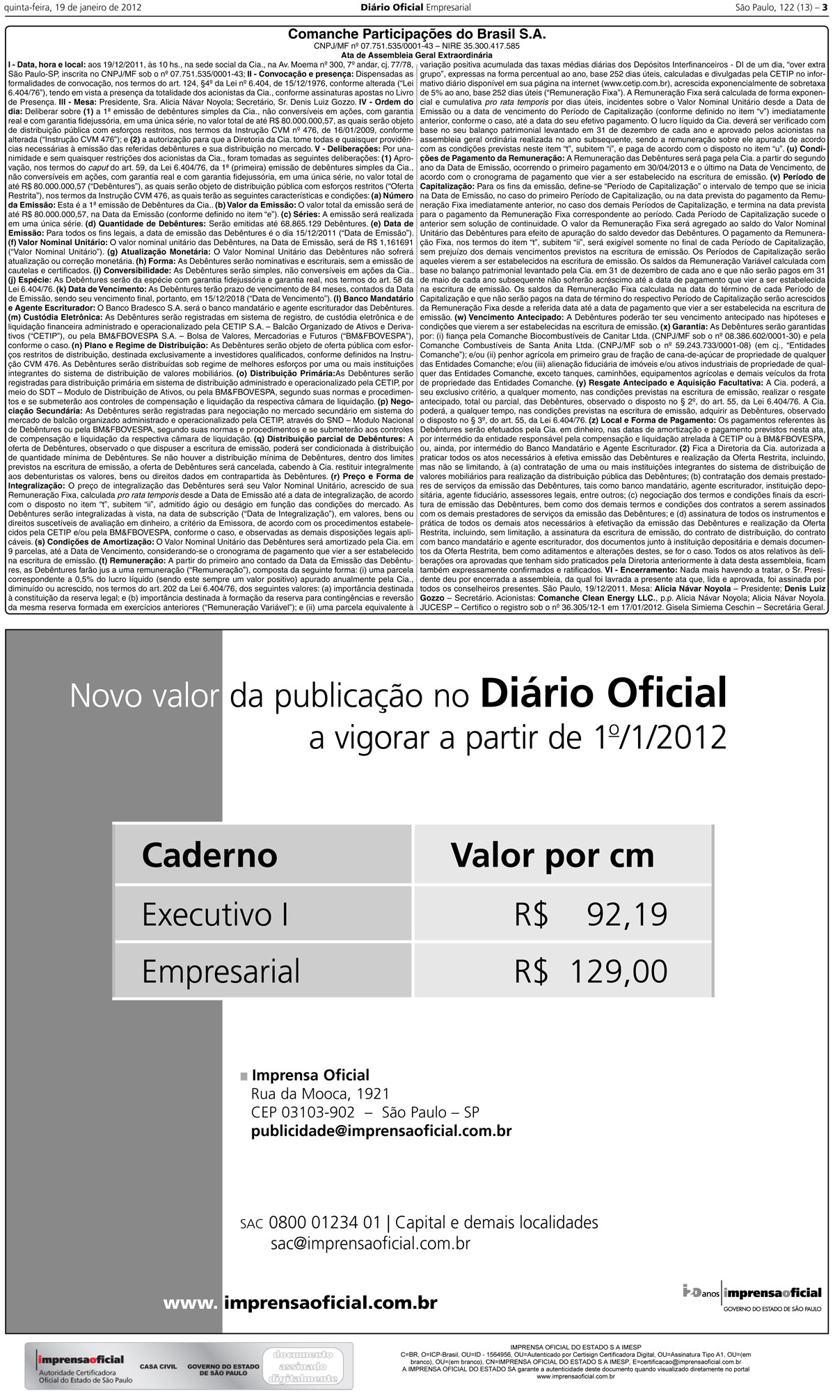 Publicação de ATA II – Diário SP – 19.01.12